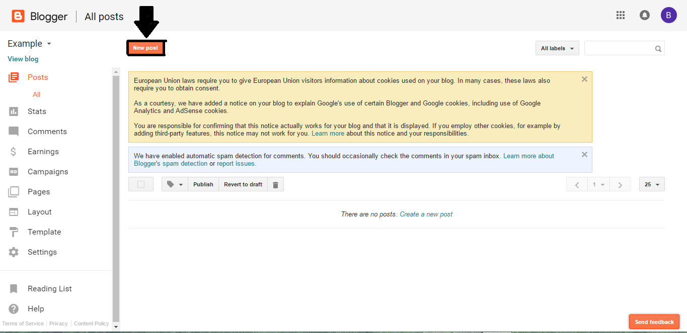 While I leave you to decide on the content of your blog post, below is a step by step explanation of how to create and publish a blog post.
